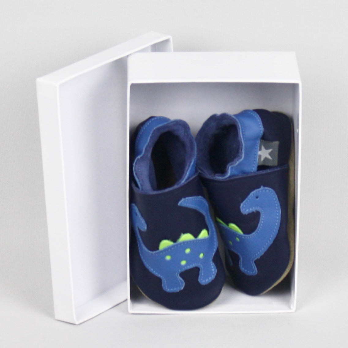 These gorgeous dinosaur inspired baby shoes in navy / royal blue make the perfect gift for a baby.