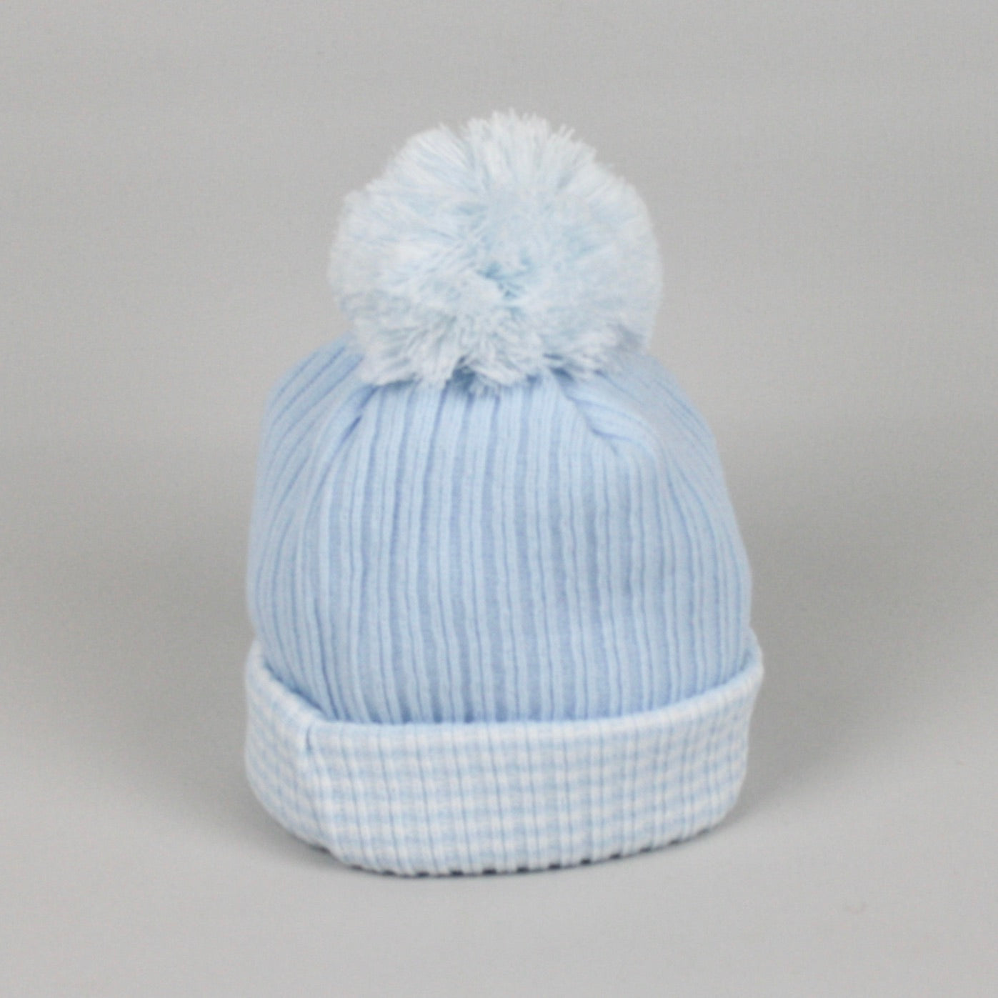 In this gorgeous traditional knitted bobble hat in a pastel blue colourway, this is something different and is sure to make you smile.
