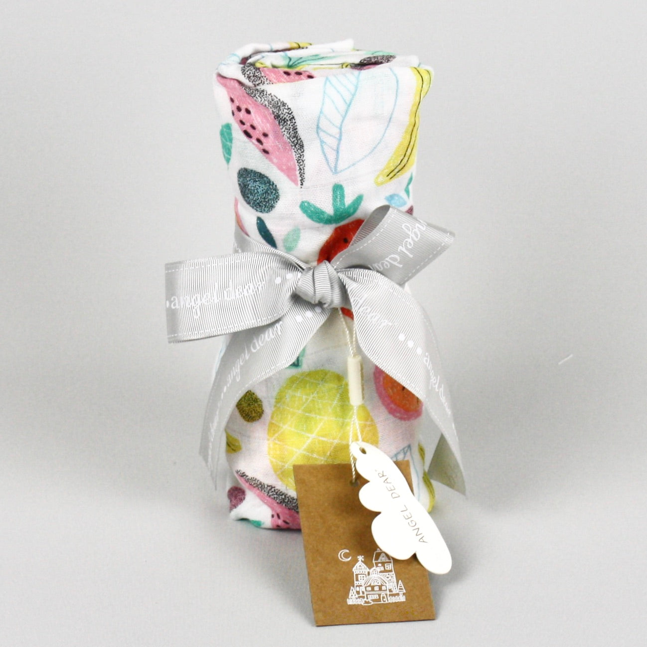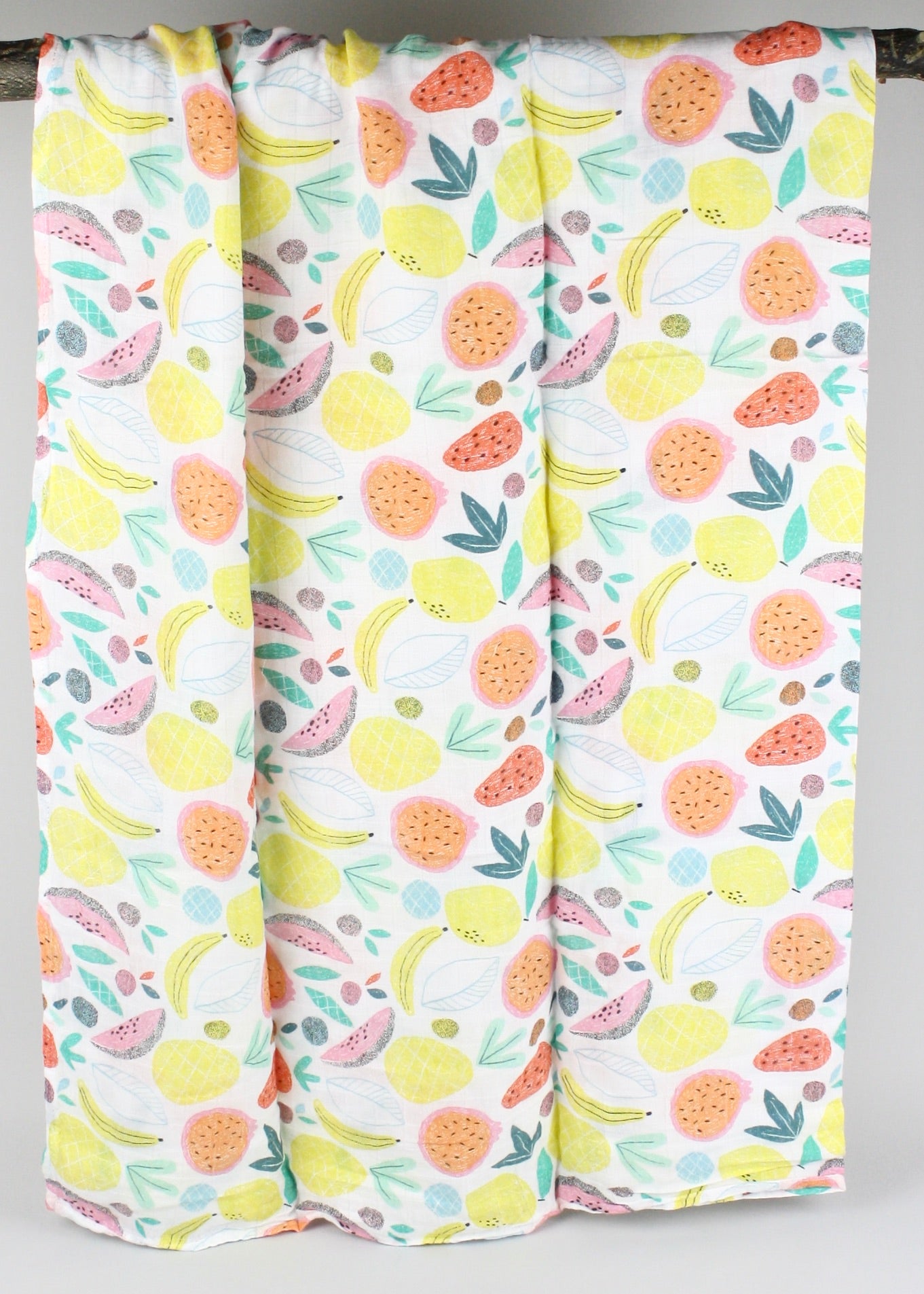 Baby's first months are a time to be luxuriated with the joy of childhood and this stunning bold fruit themed swaddle is sure to bring a smile to everyone.