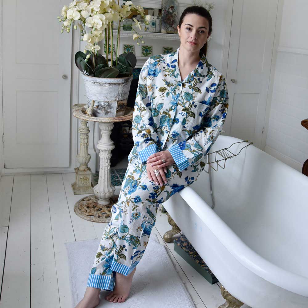 We offer some lovely luxury Jaipur printed pyjamas that are made from beautiful cotton – light to wear, easy to care for and perfect for packing for trips away.