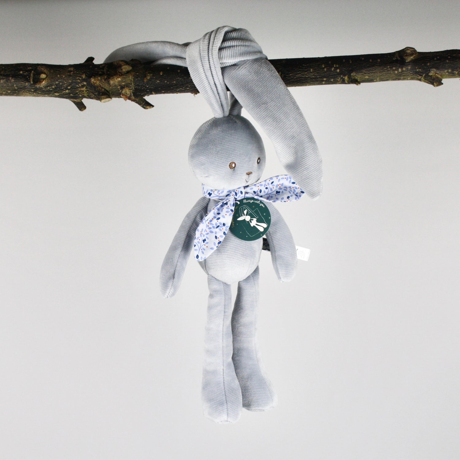 This cheerful blue rabbit has such long ears that you can hang it anywhere to keep it and never lose it. You can do anything with them: do headstands, go on the see-saw, cling to the clothesline, and even swing all the way to the moon. Its extra-long ears help the rabbit to wrap your baby in tender hugs and share sweet moments with them.