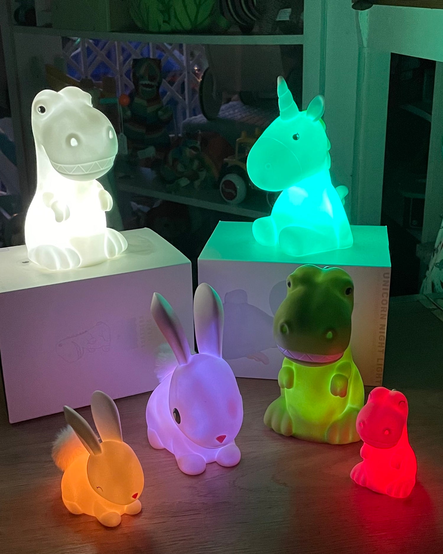 - 3 different options of light by simply tapping the bunny are: 50% softer white light, 100% brighter white light or multi-coloured auto changing