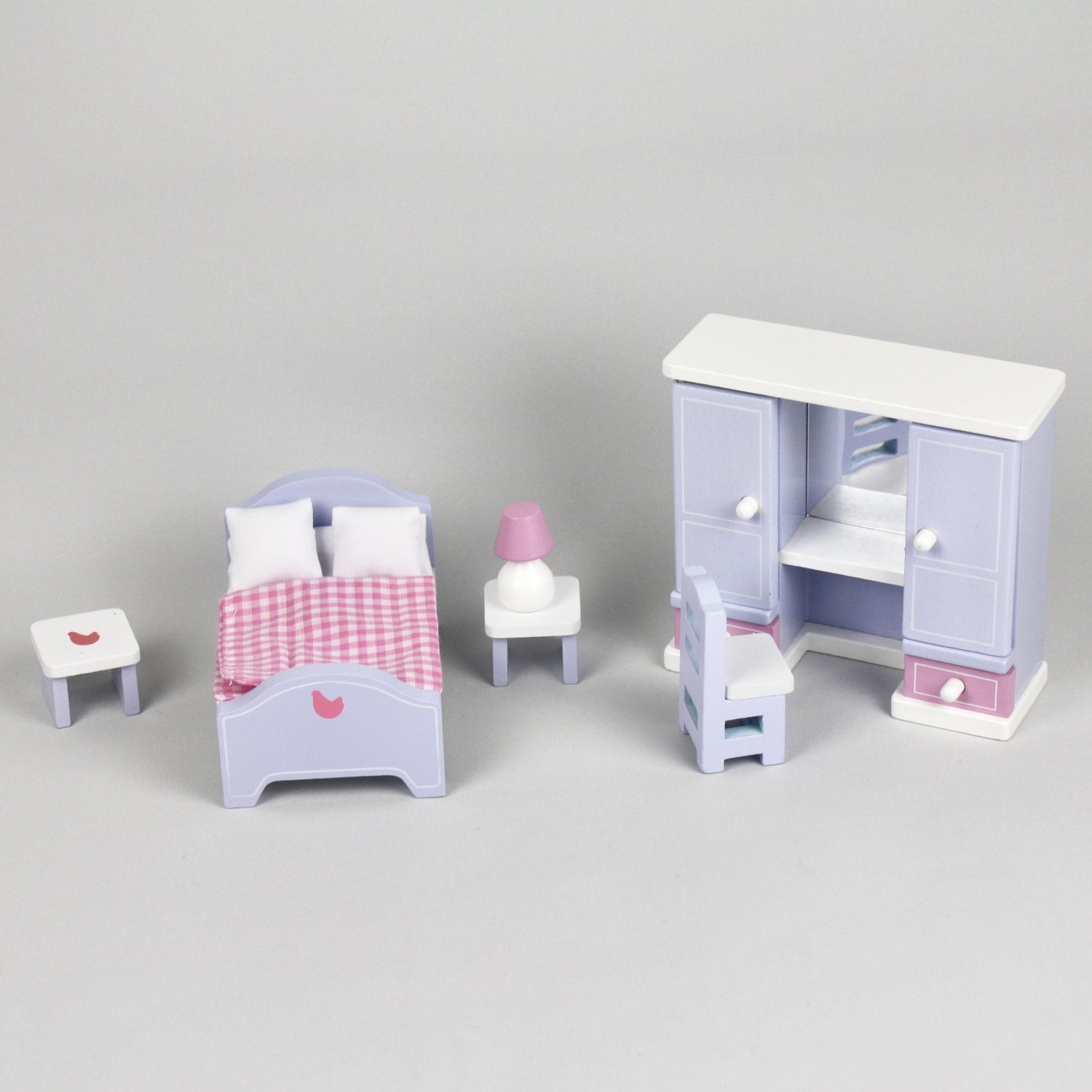 Beautifully constructed from beech wood, this doll's house bedroom furniture set has everything your child needs to create a bedroom for tired dolls to retreat to after a busy day of play.