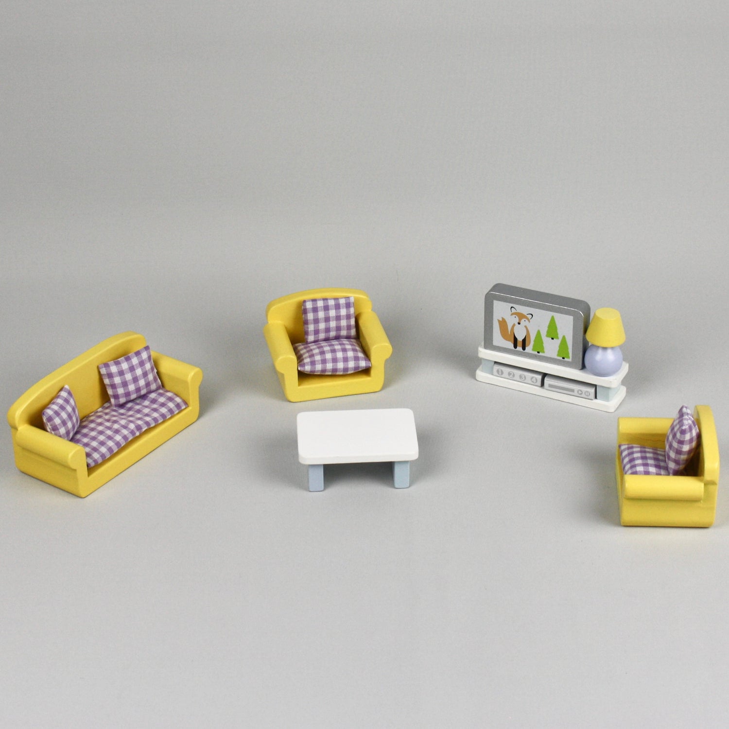 Beautifully constructed from beech wood, this doll's house living room set has everything your child needs to create a fully furnished living area. After a busy day of play, there is nothing more satisfying than retreating to the living room and relaxing in front of the telly.