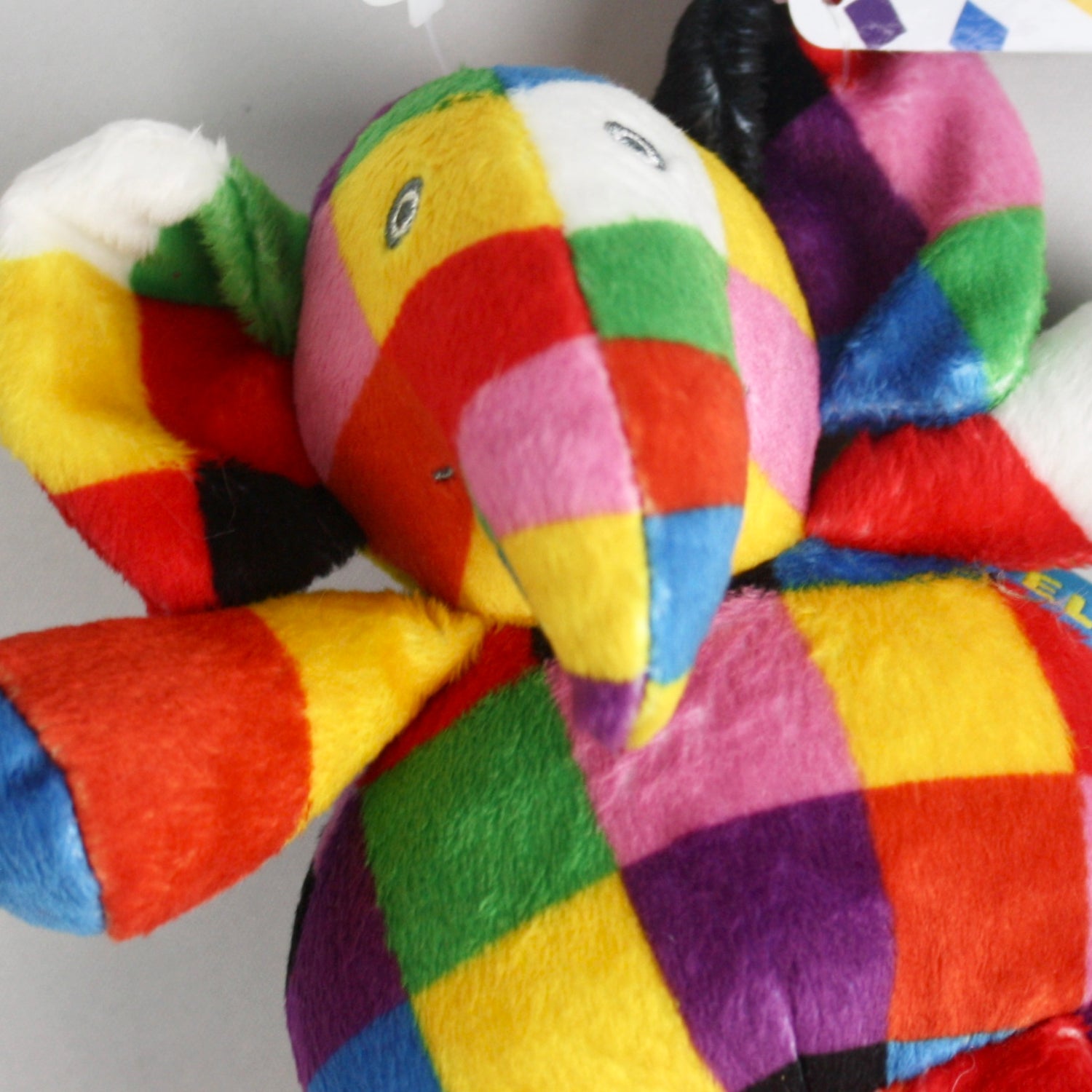 This Elmer the Elephant soft toy rattle is tactile and engaging, entertaining inquisitive brains with the bright and bold colours.