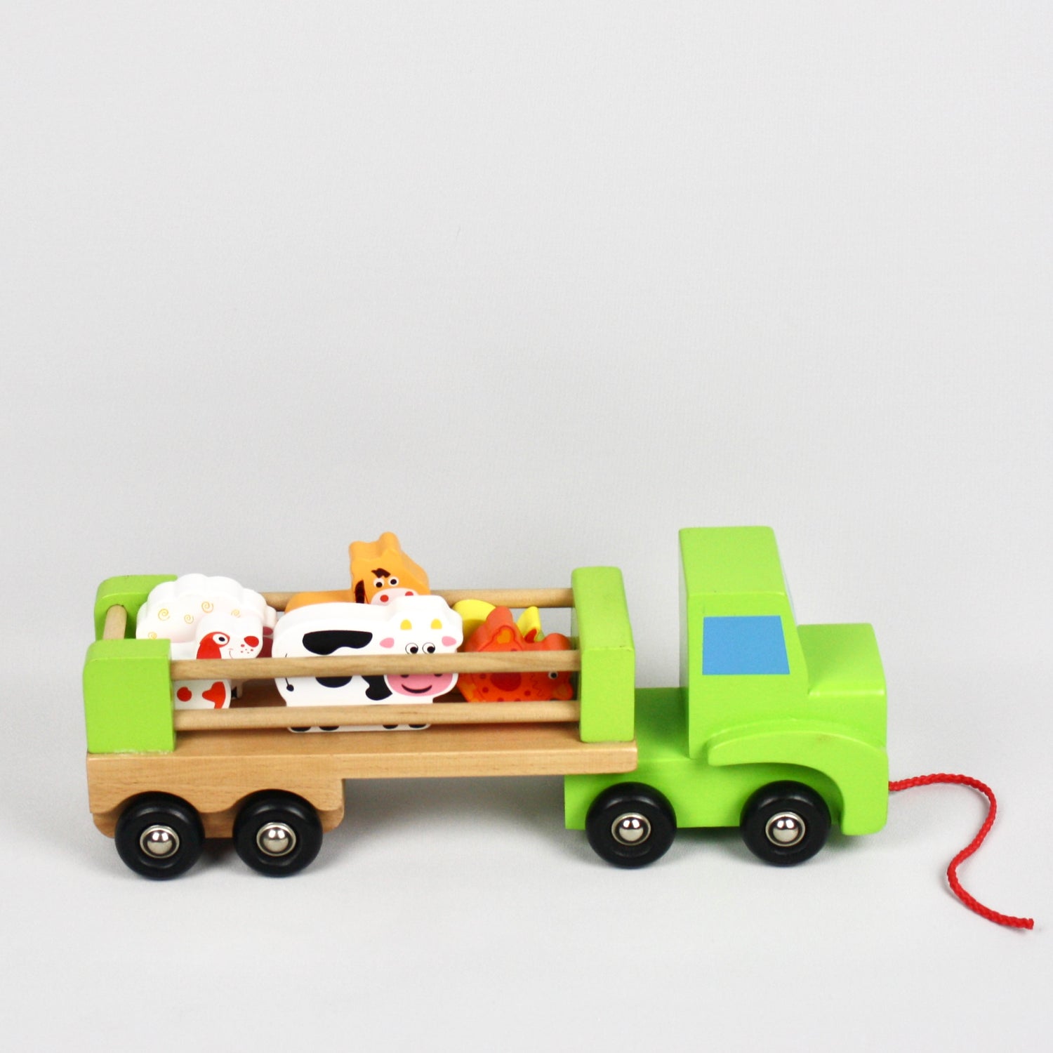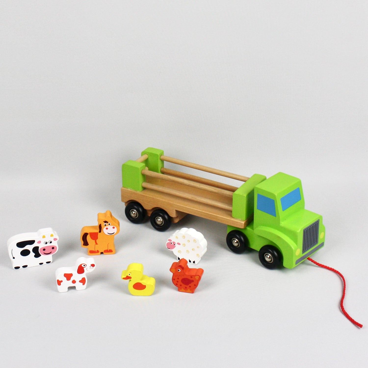 A retro feel pull along toy that comes complete with a sheep, cow, hen, duck, horse and farm dog.