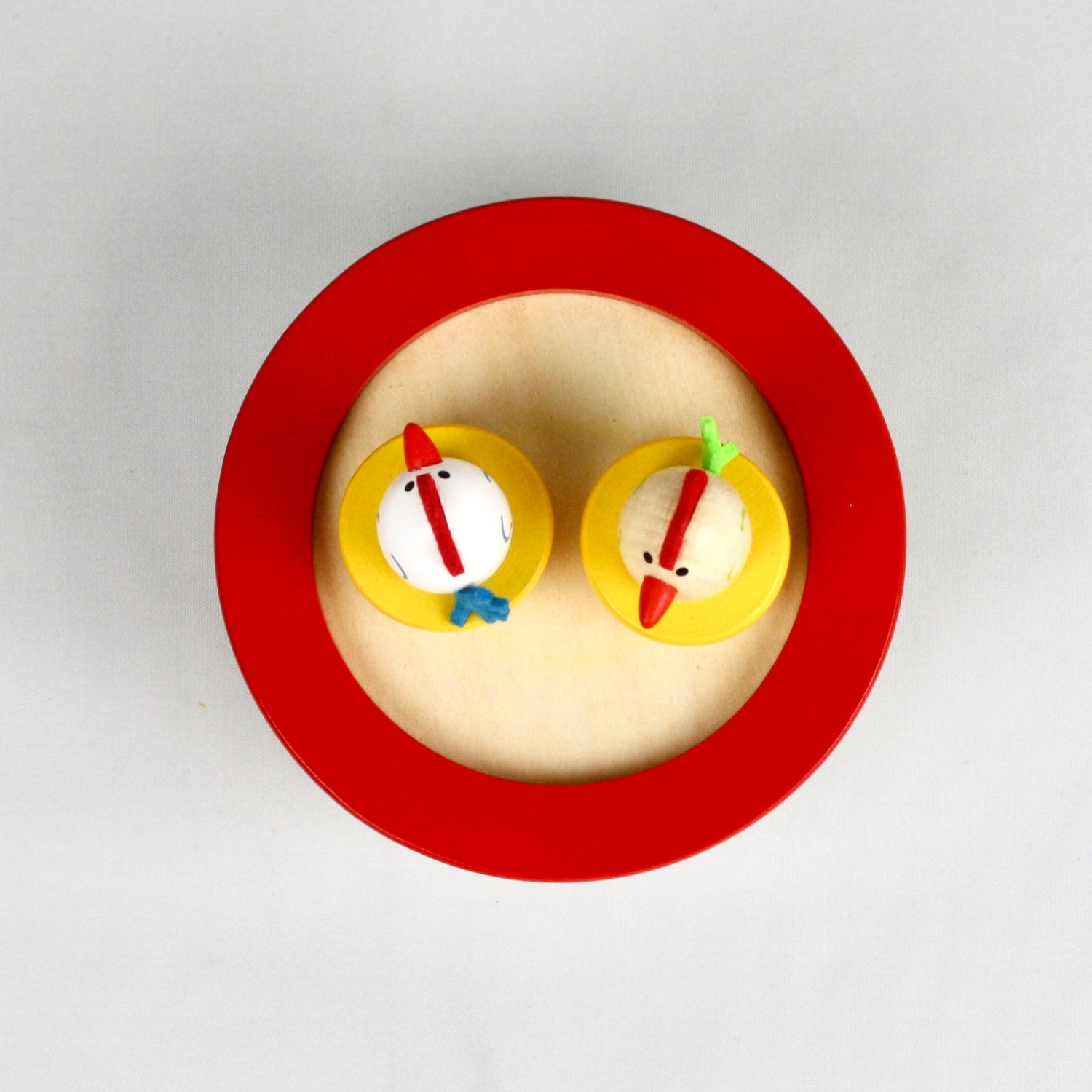 This beautiful wooden music box featuring two dancing chickens is a timeless gift with a vintage feel.
