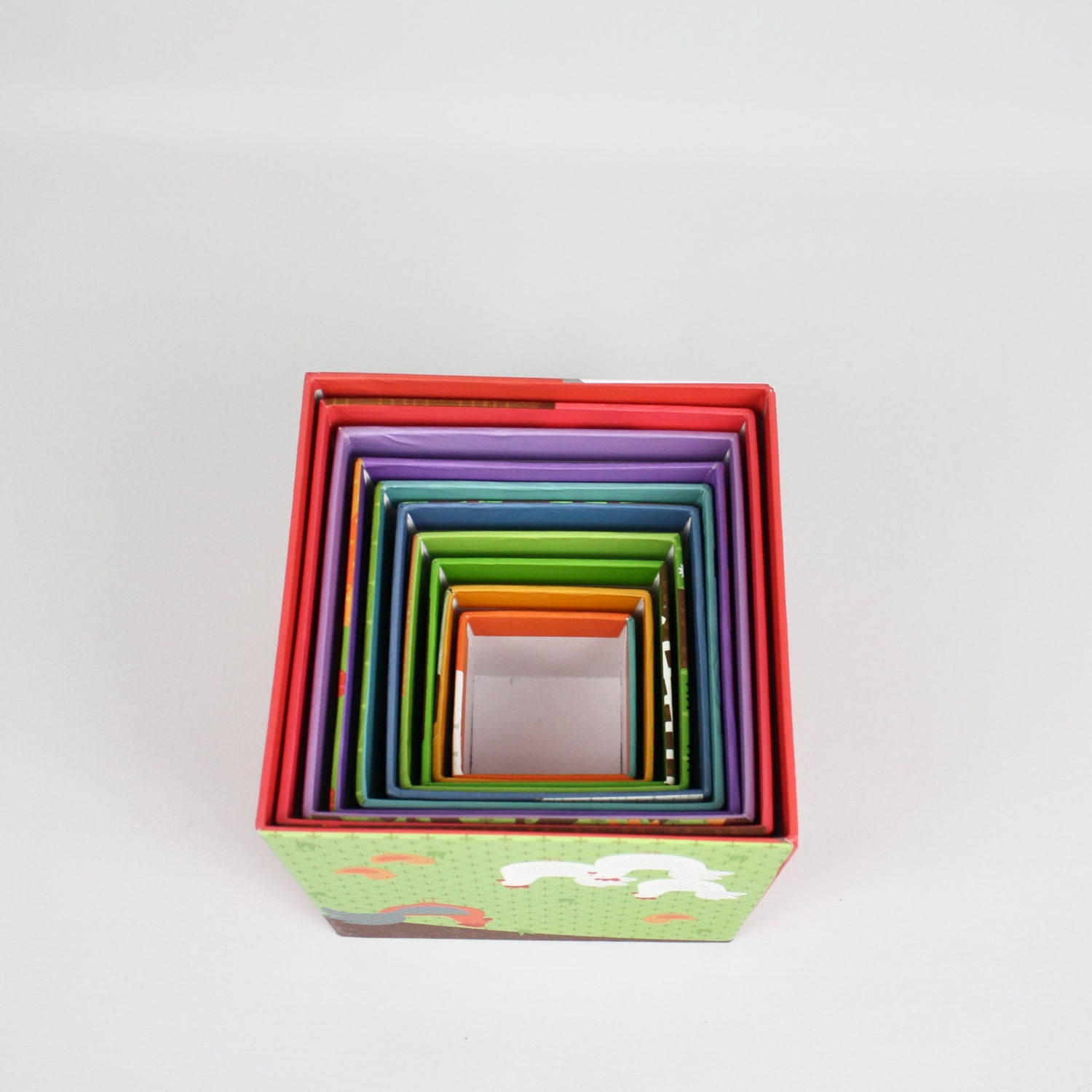 Graduating in size, these delightful stacking cubes need to be stacked in the correct order, from largest to smallest, to create a tower.