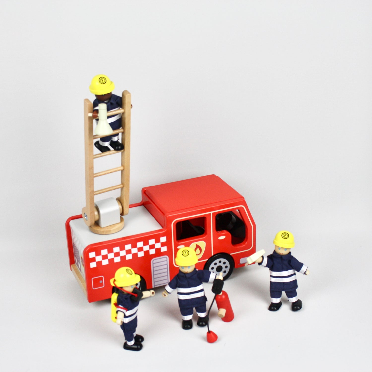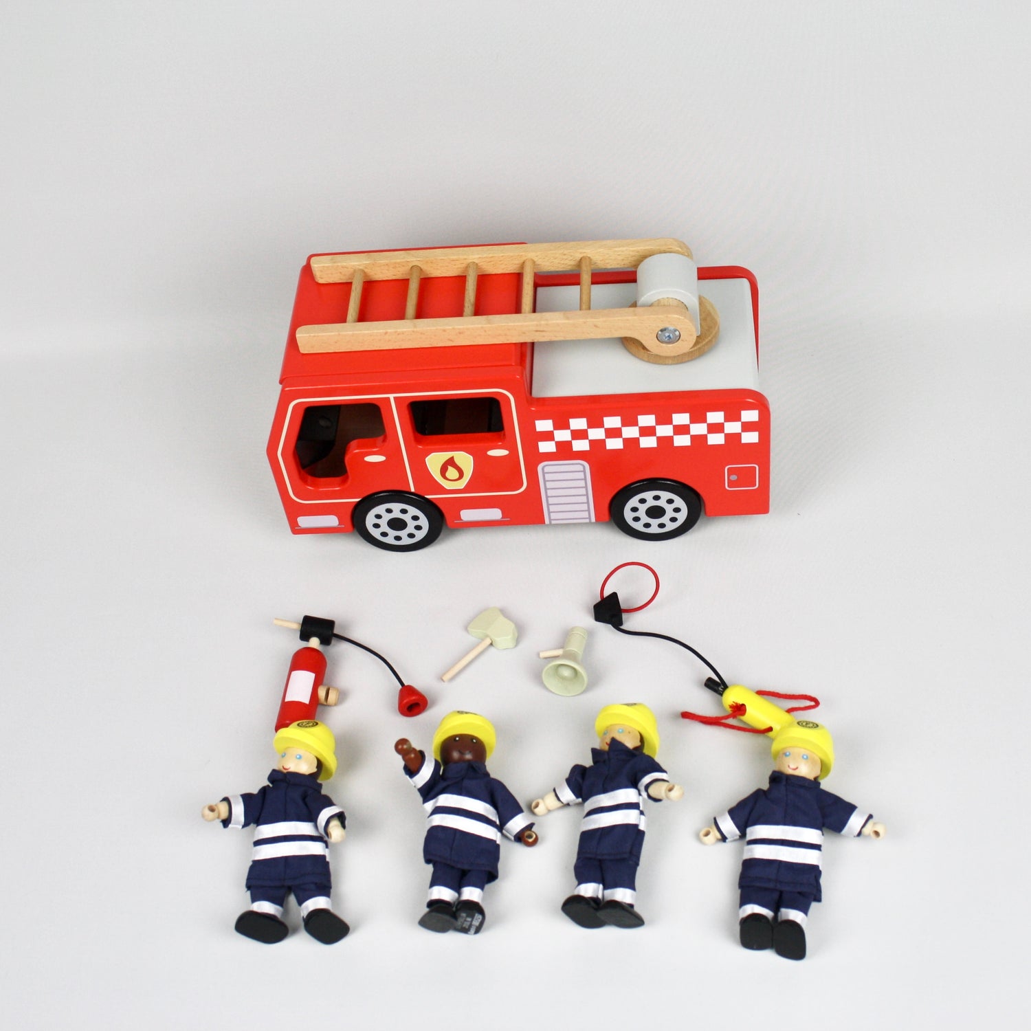 This wooden fire engine and fire fighters set provides plenty of fun.