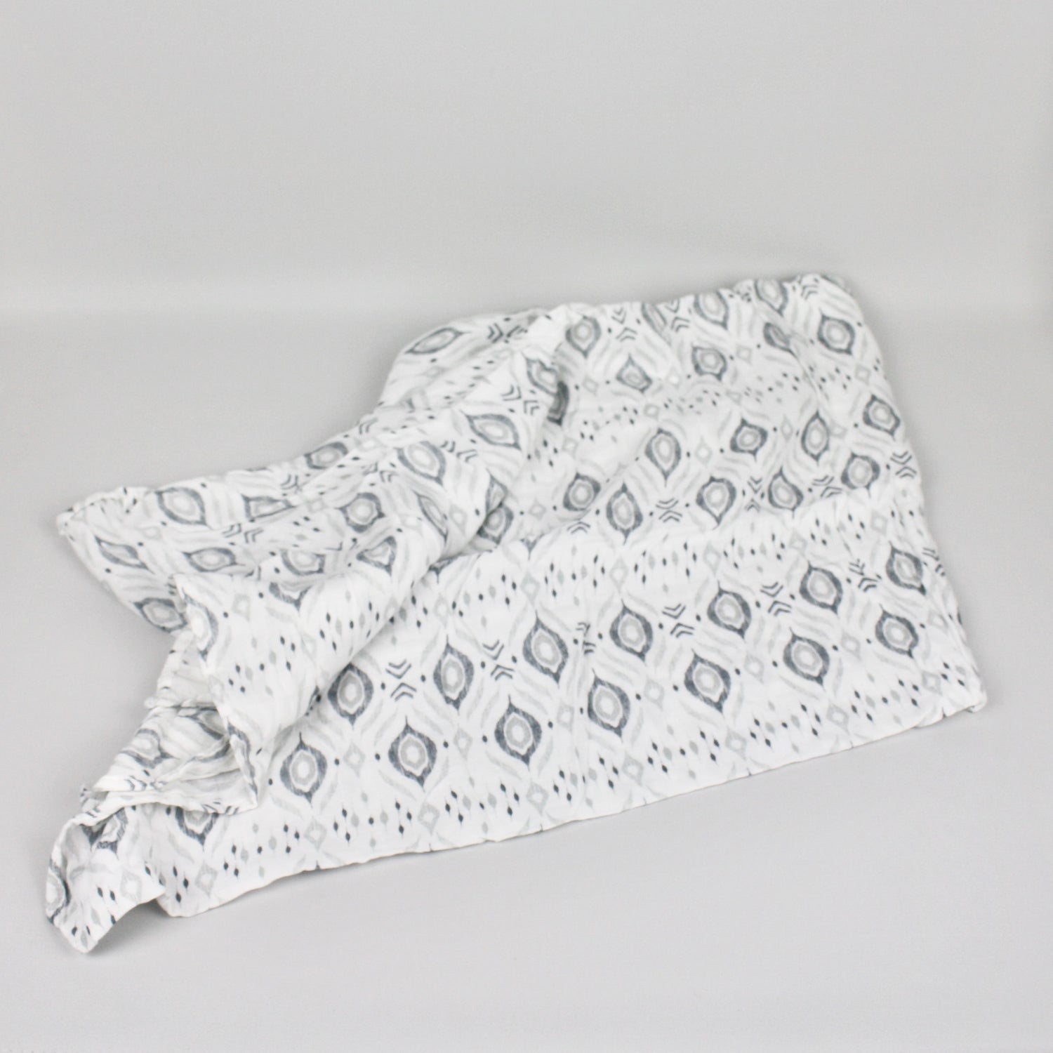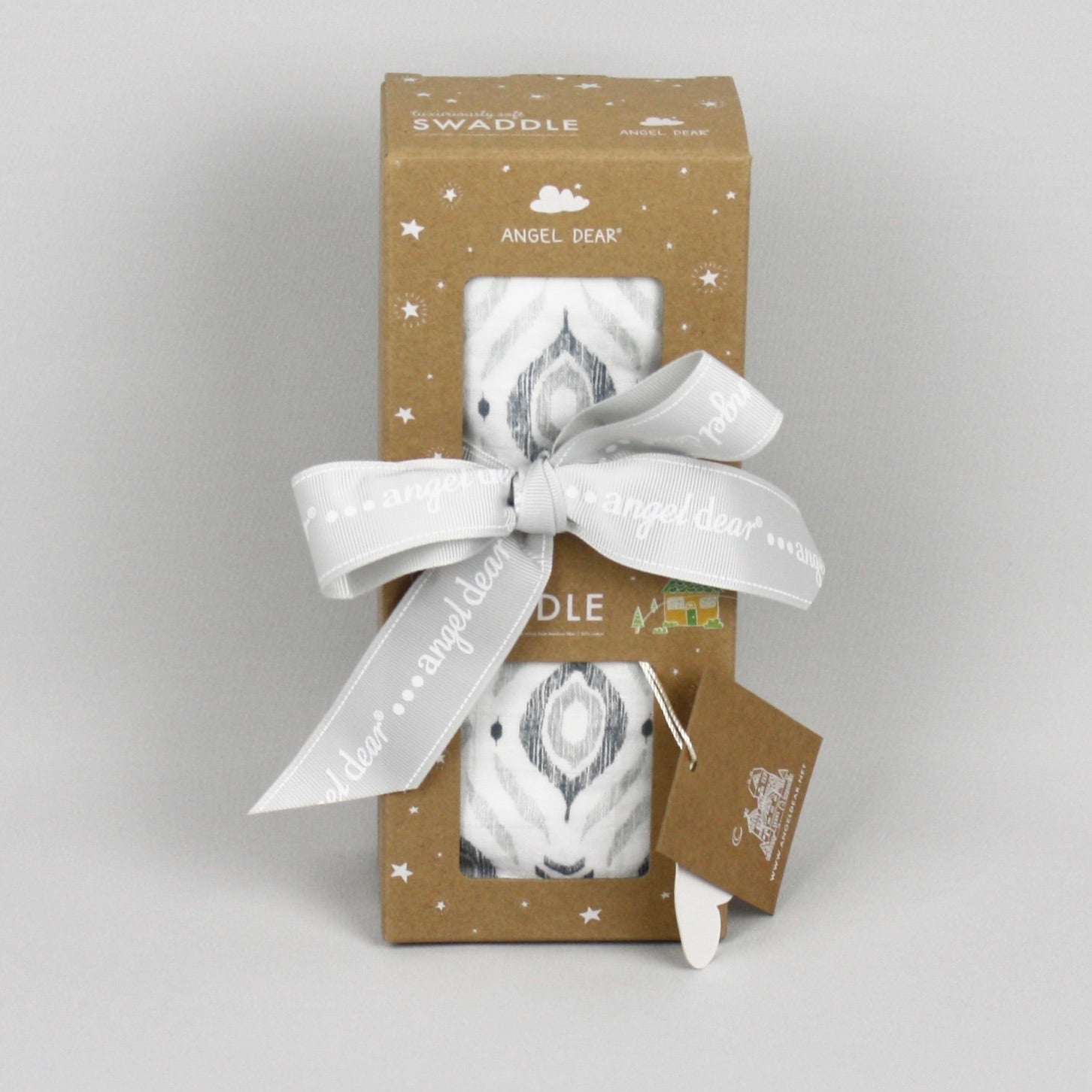 Baby's first months are a time to be luxuriated with the joy of childhood and this stunning grey ikat themed swaddle is sure to bring a smile to everyone.