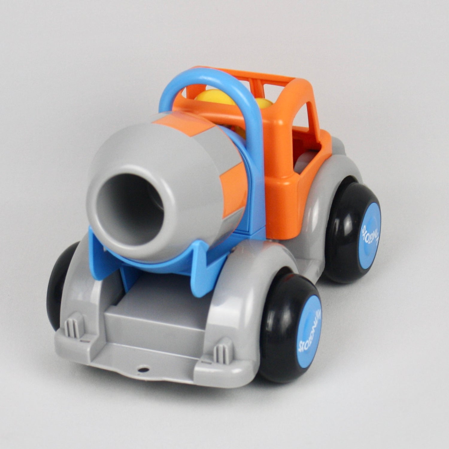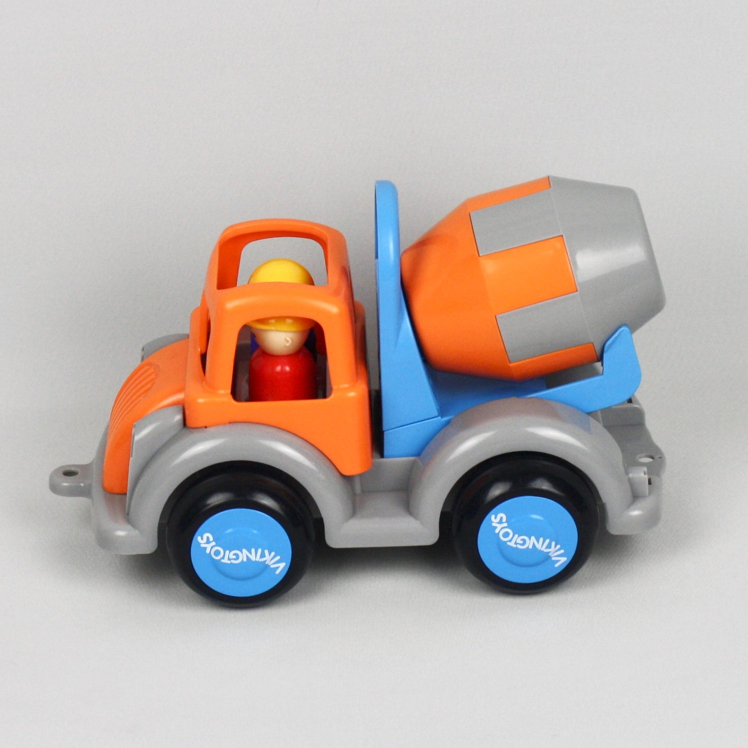 Swedish designed and made from toxic free plastic this jumbo cement mixer toy comes with two construction workers who are ready to get to work!