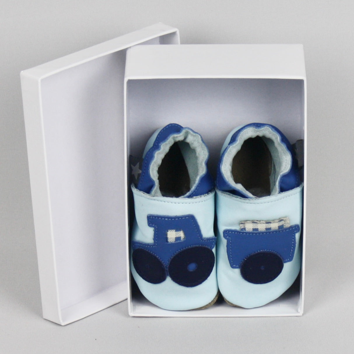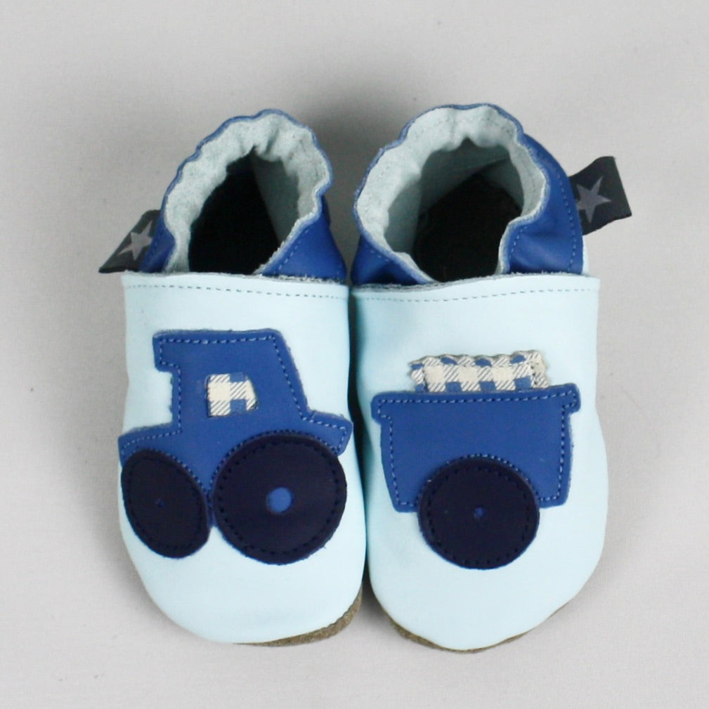 Light Blue Tractor and Trailer Baby Shoes