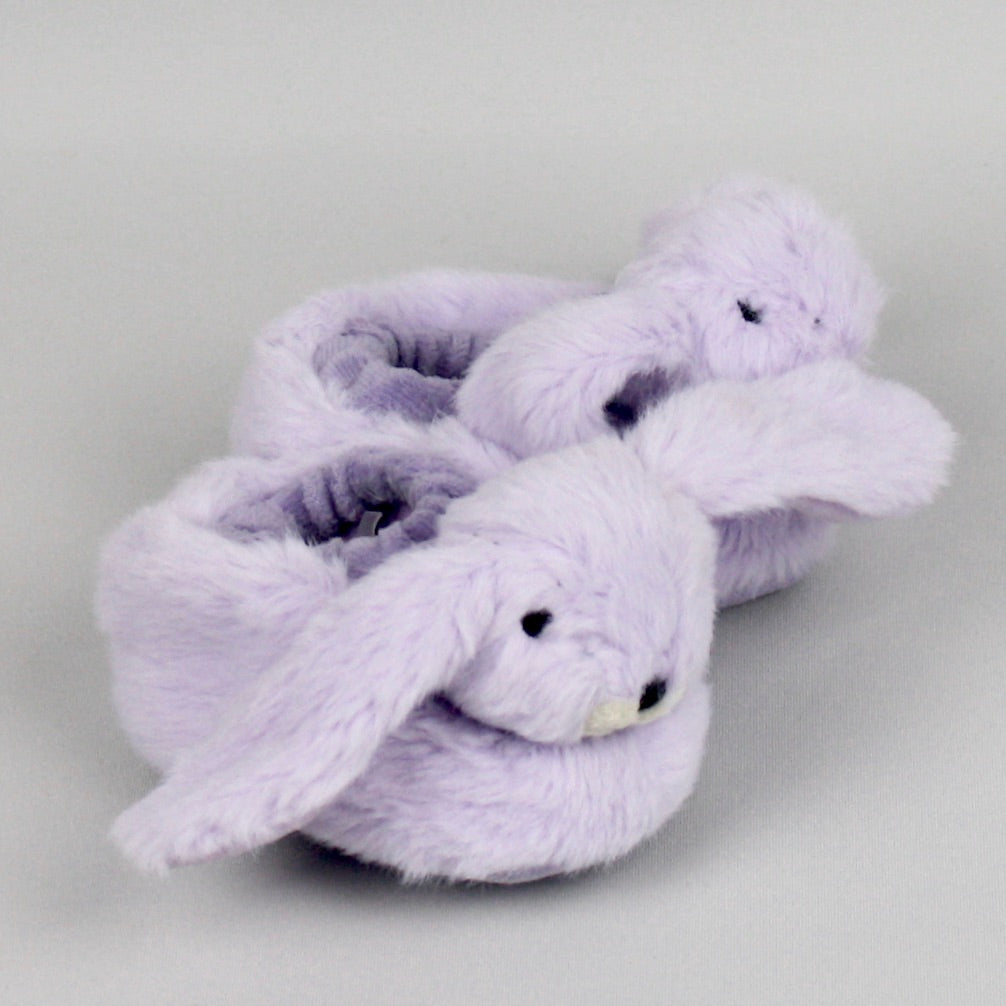 These super soft cuddly slippers wrap around your little ones feet keeping them cosy. This lovely lilac bunny design makes a perfect new baby gift as is suitable from birth and is machine washable.
