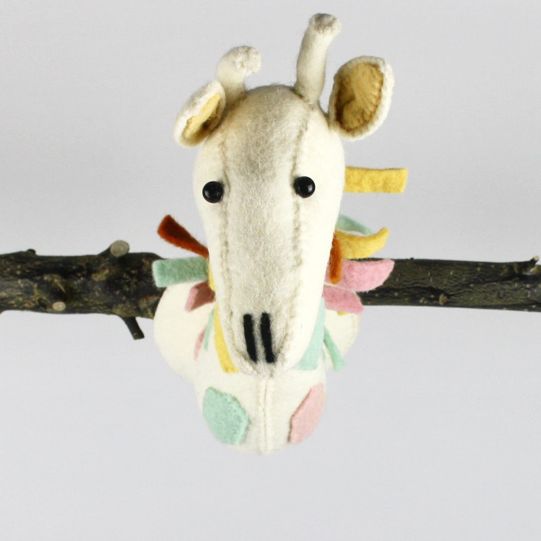 A hand crafted, wall mounted felt animal head which will be appreciated by adults and children alike.