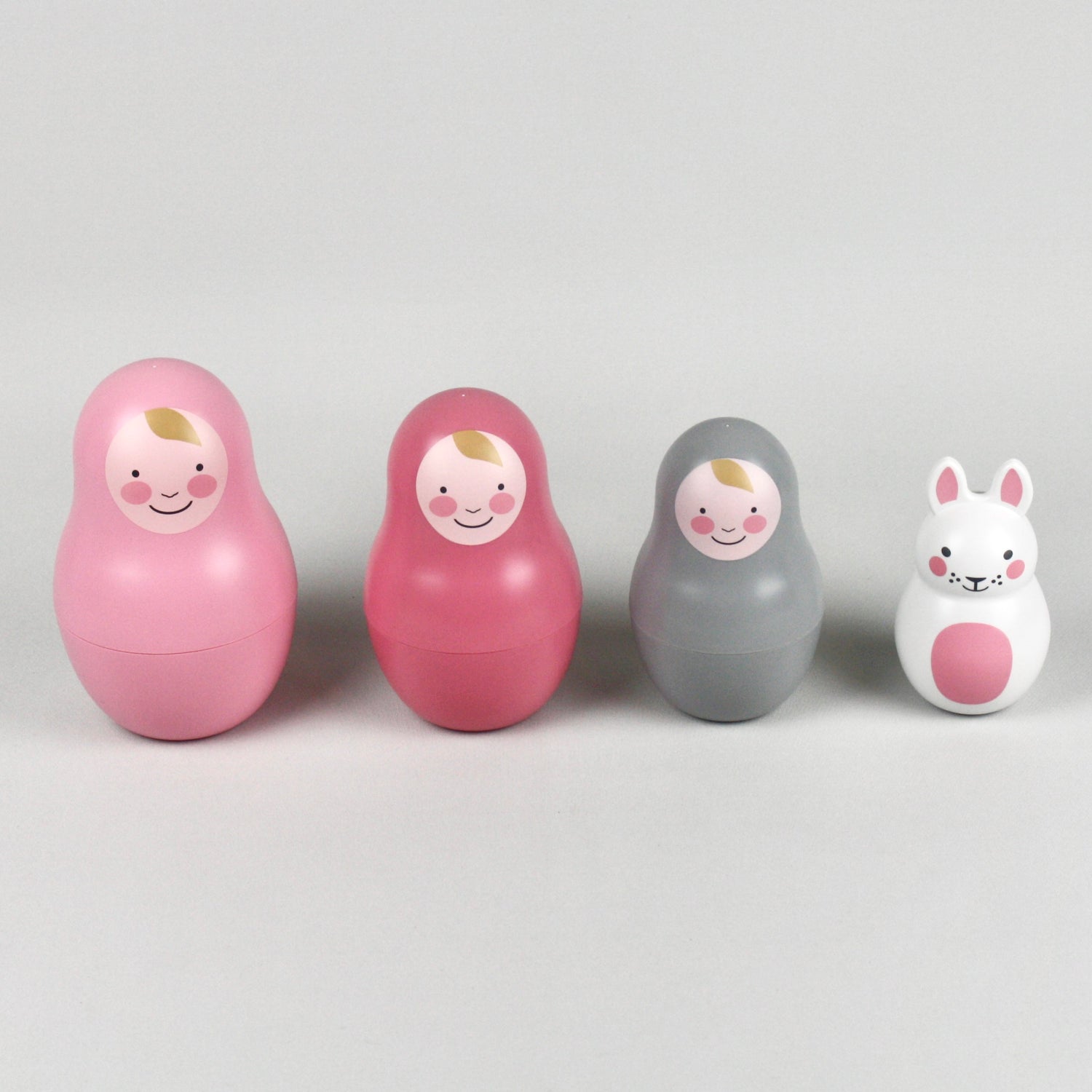 These beautiful traditional nesting babies encourage hand-to-eye co-ordination through interactive play. Babies will love the faces, challenge and the surprise element as the babies and bunny are gradually revealed!
