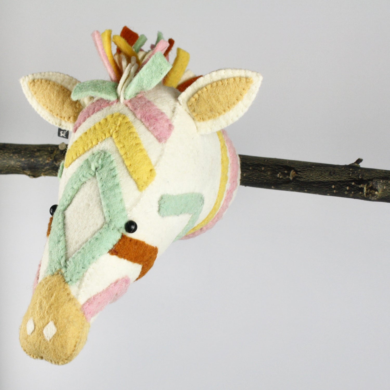 A hand crafted, wall mounted felt animal head which will be appreciated by adults and children alike.