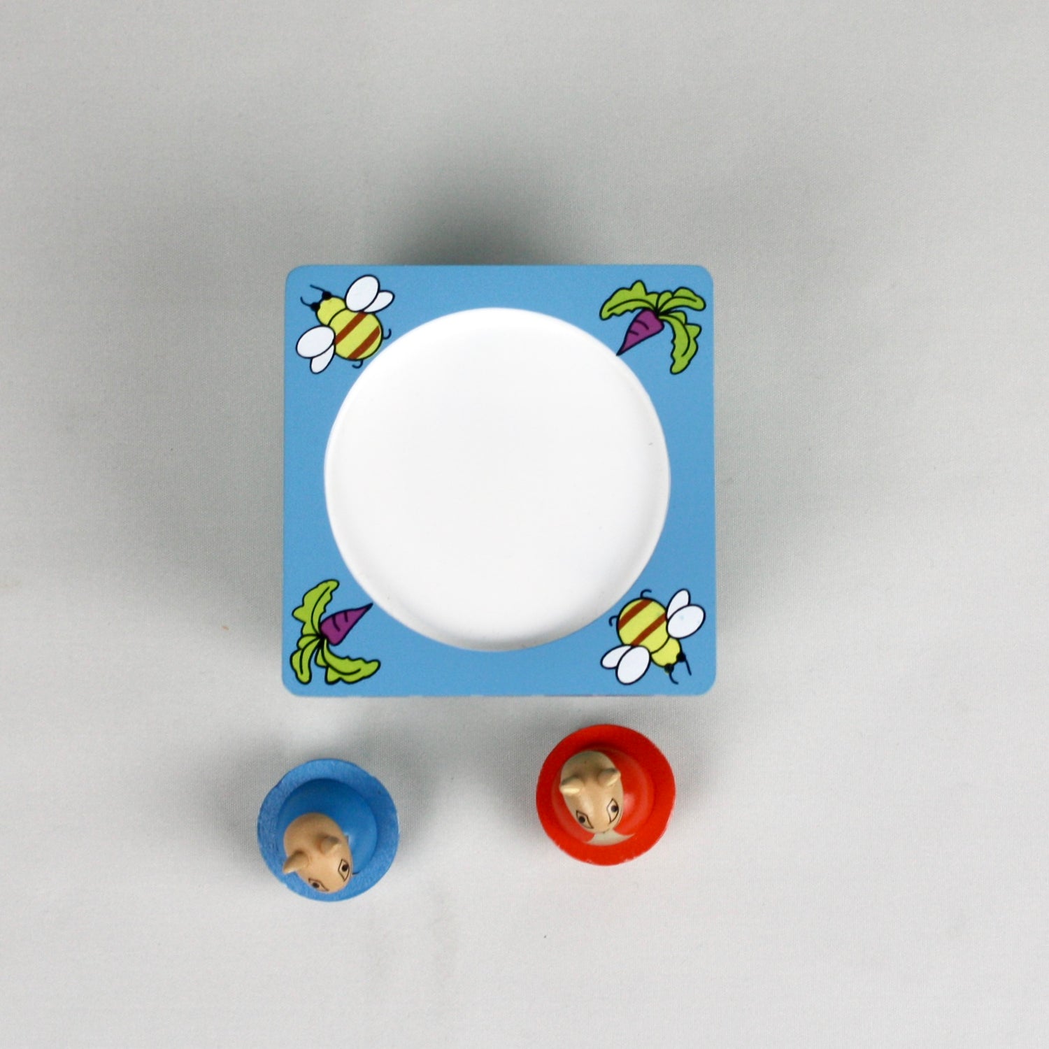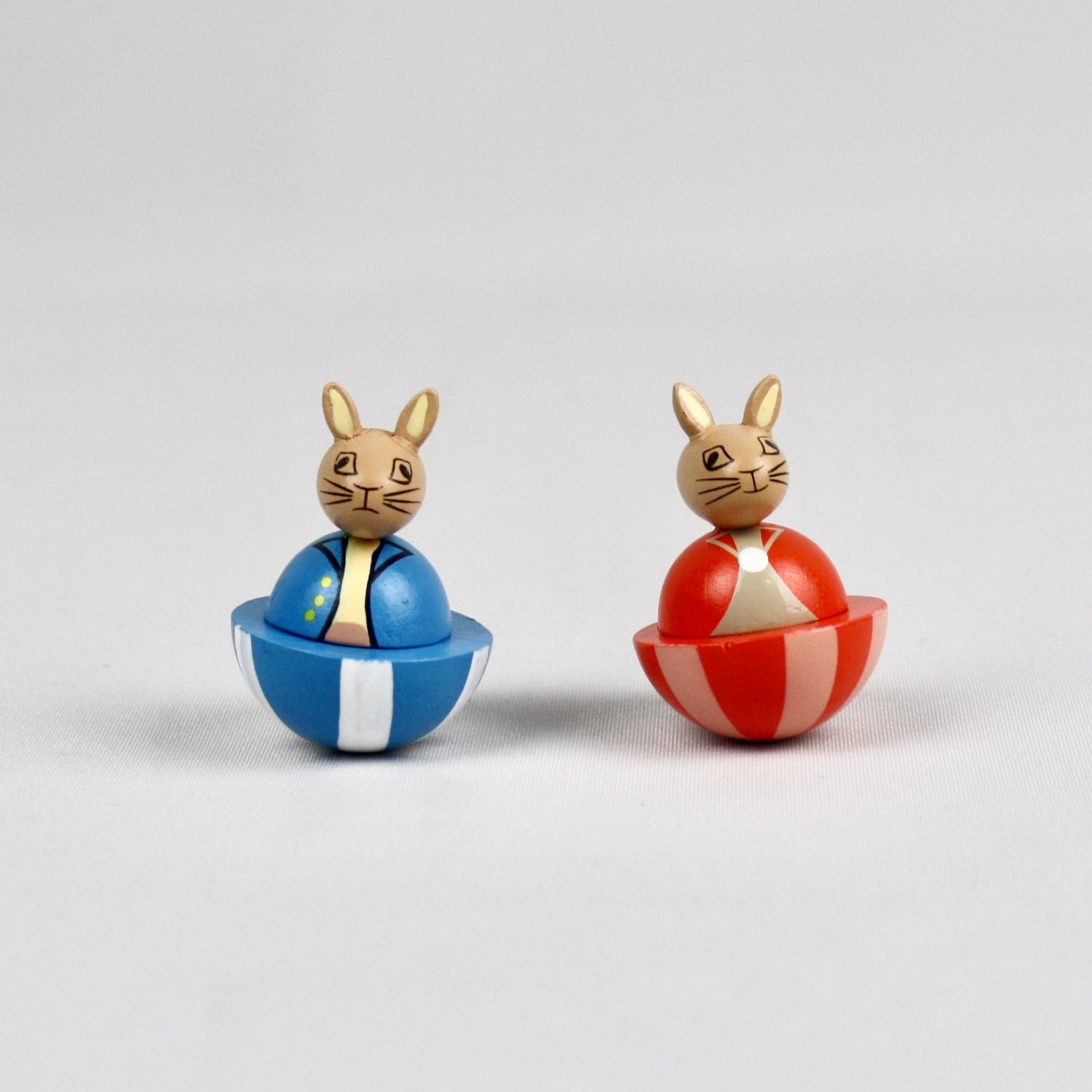 Just wind up the music box, and enjoy watching Peter Rabbit and Flopsy Bunny dance and twirl along to the tune of "Brahms Lullaby". Peter & Flopsy are attached to the base via hidden magnets but can be easily removed for playing with on a table or on the floor.