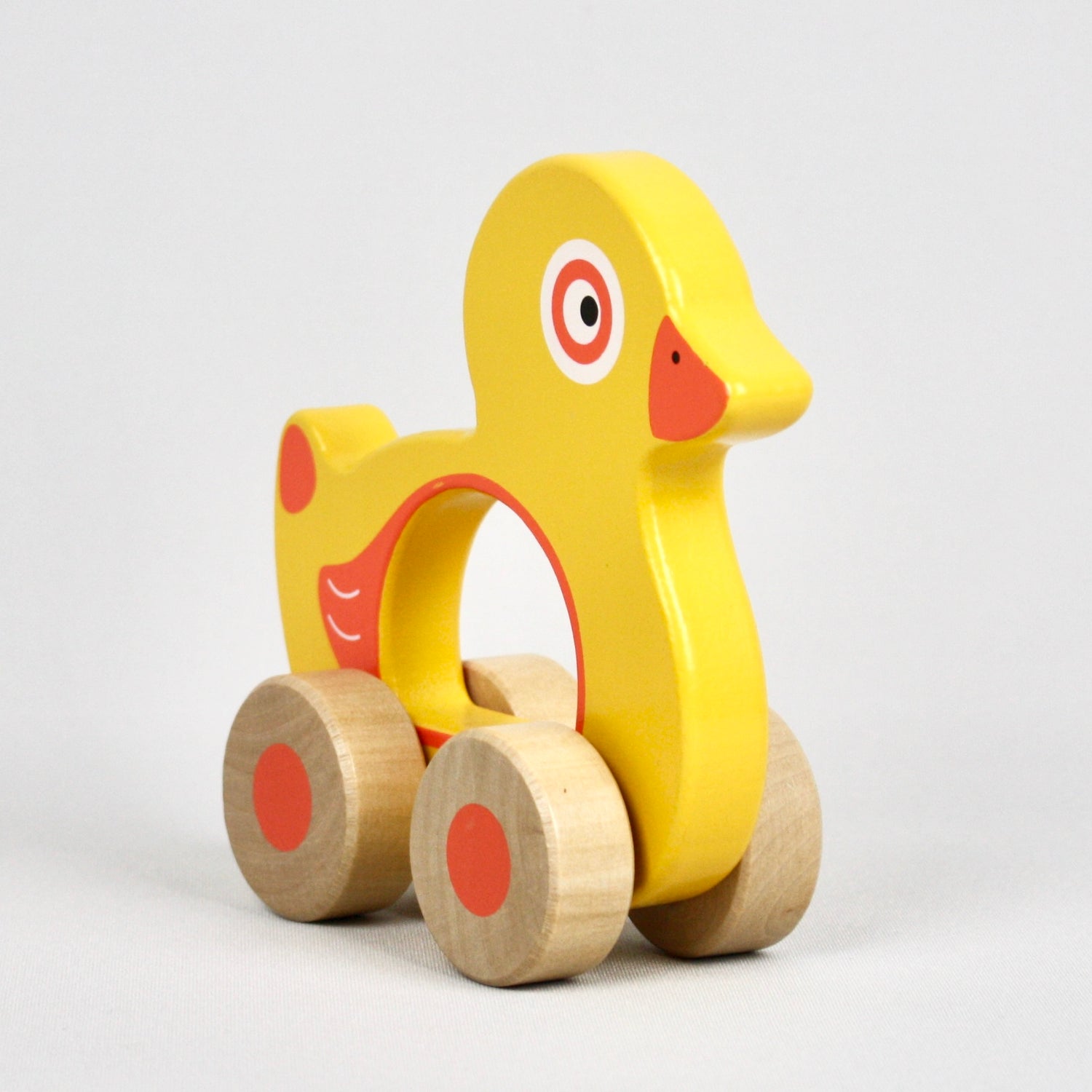 This happy push along Duck is great for little hands to play with.
