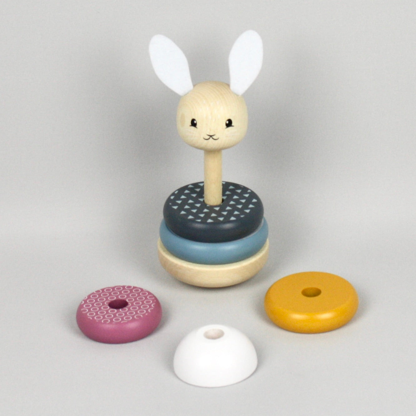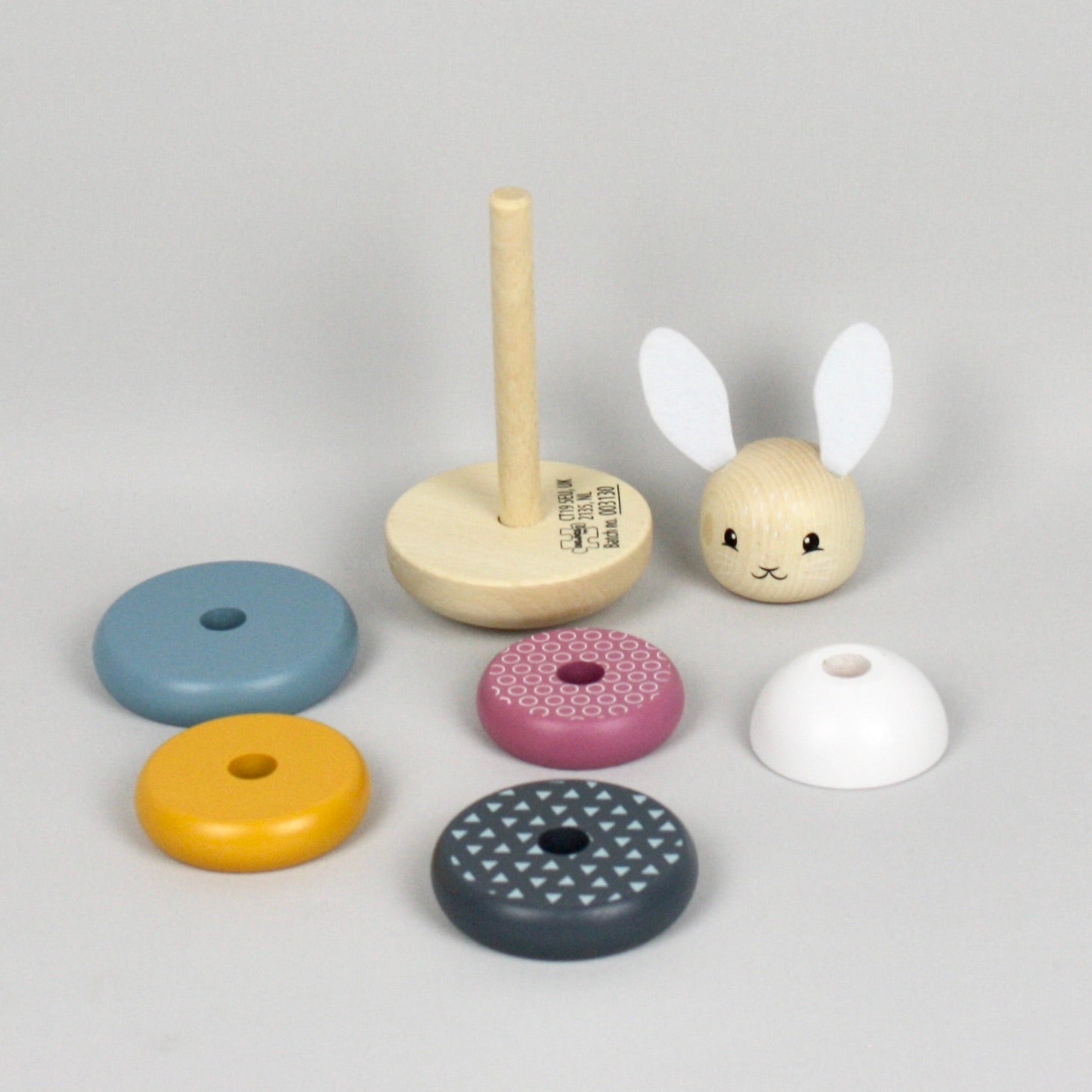 This classic toy is made from responsibly sourced materials from renewable FSC certified forests is the ideal first wooden toy for baby. This delightful rabbit stacking ring will help children develop powers of concentration, to recognise shapes and colours and help with coordination and motor skills. A brilliant functional toy that looks good in any nursery or bedroom.