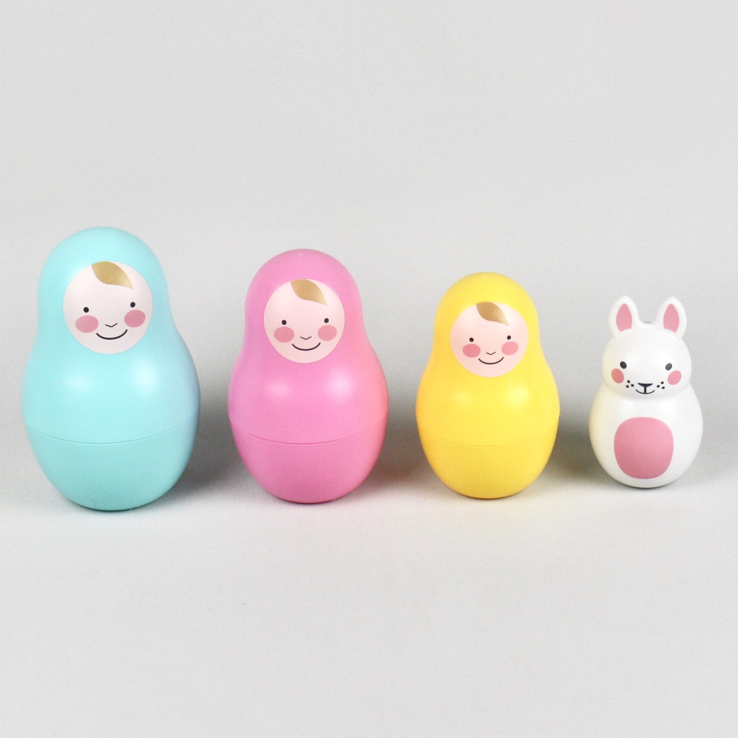 These beautiful traditional nesting babies encourage hand-to-eye co-ordination through interactive play. Babies will love the faces, challenge and the surprise element as the babies and bunny are gradually revealed!