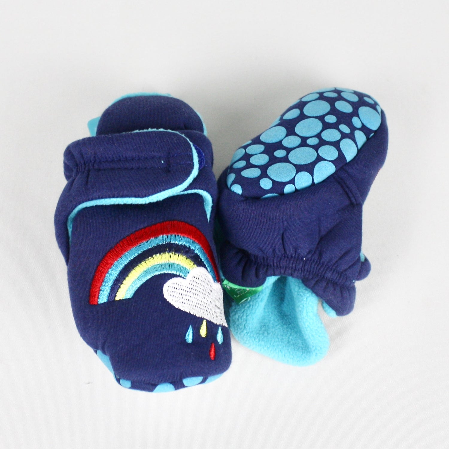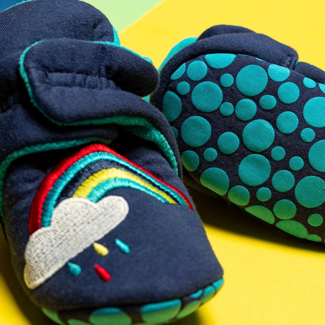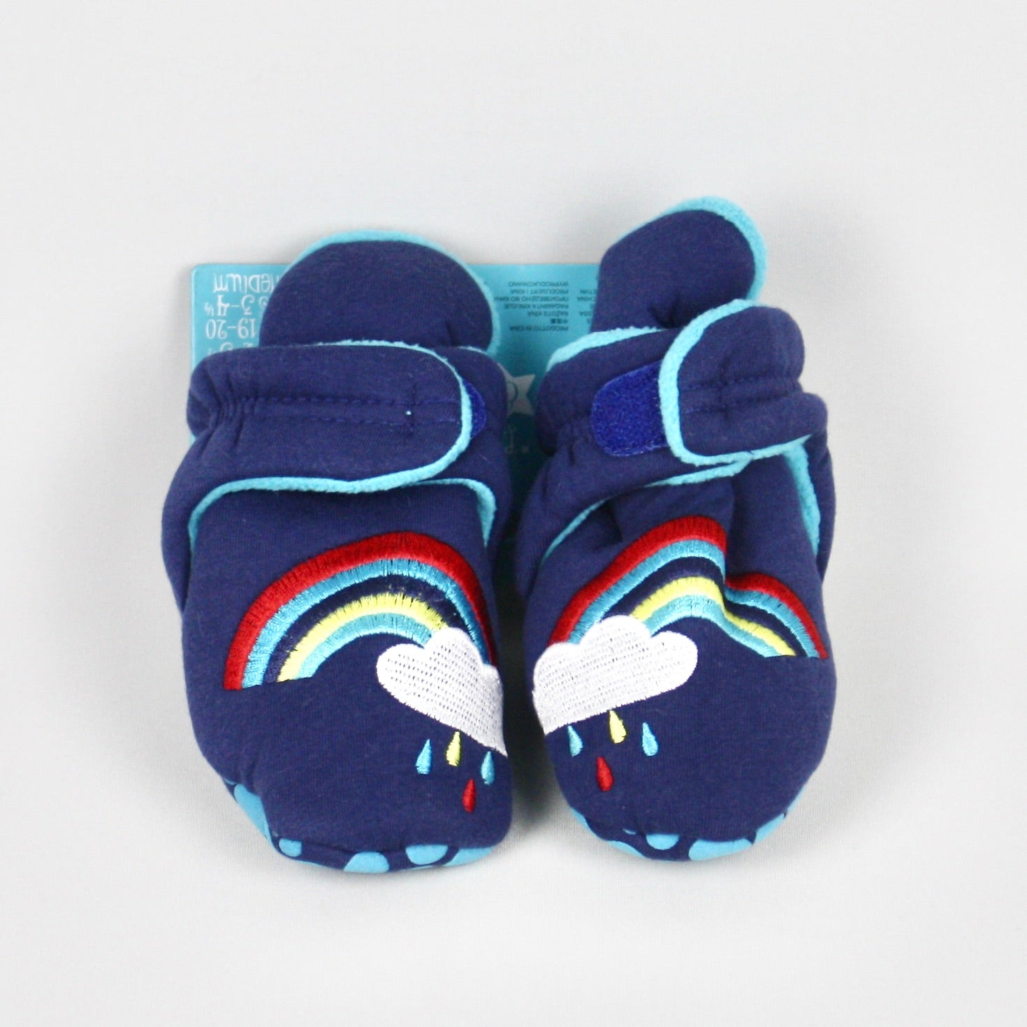 Featuring an elasticated cuff and soft rounded edge velcro, dressing is very easy. They're fleecy inside for comfort and warmth, with a printed all over pattern on the sole.