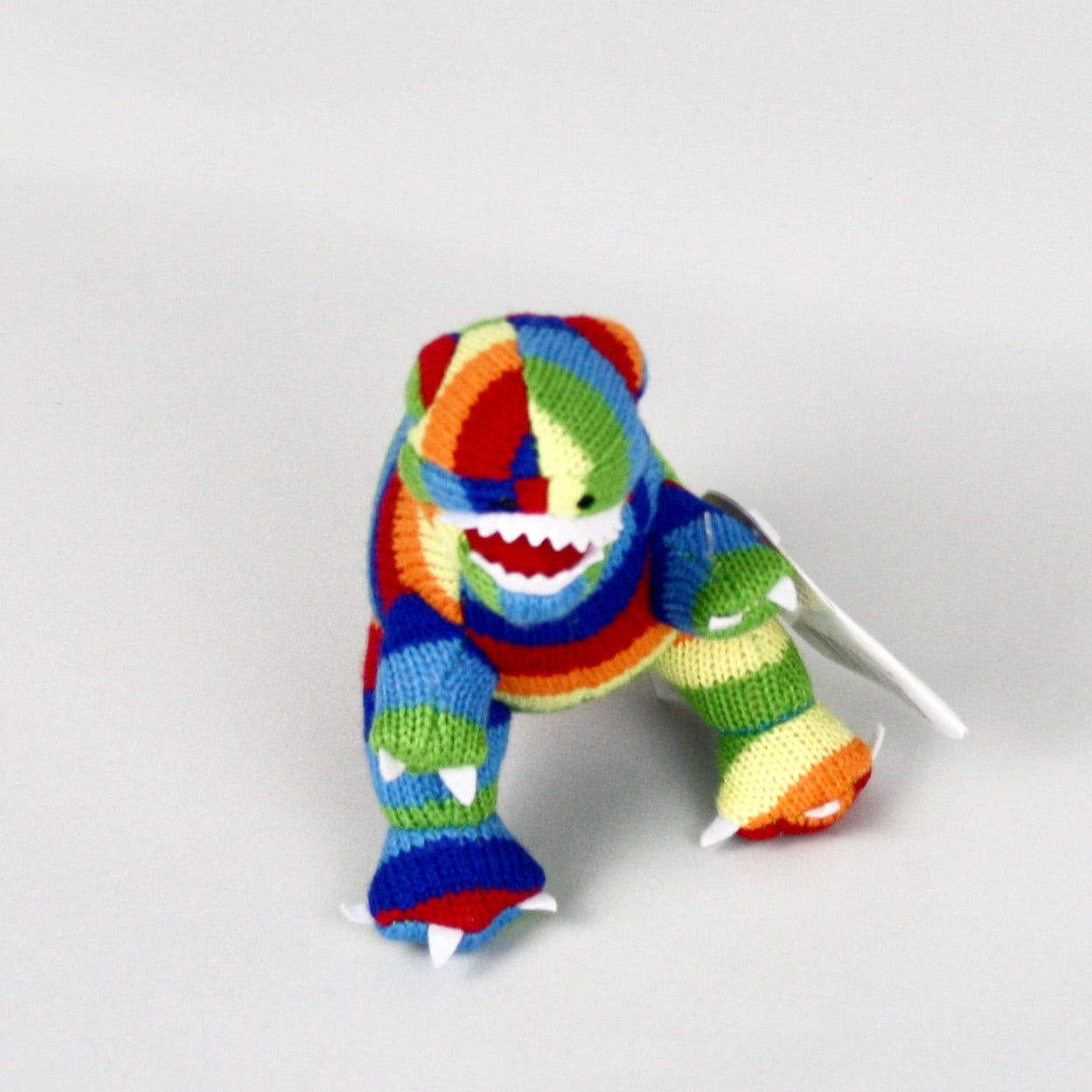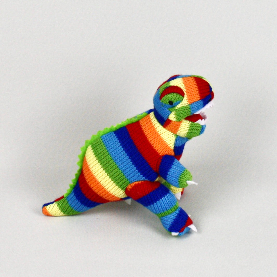 Rainbow Stripe T Rex Knitted Soft Toy Rattle