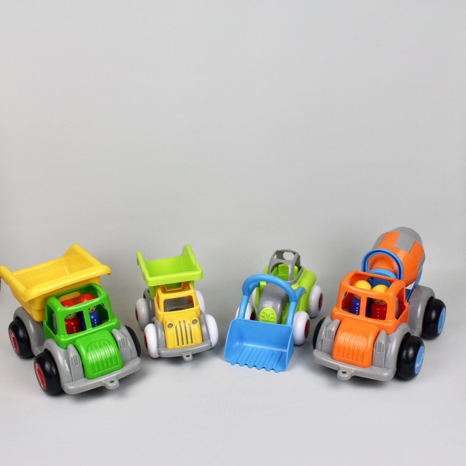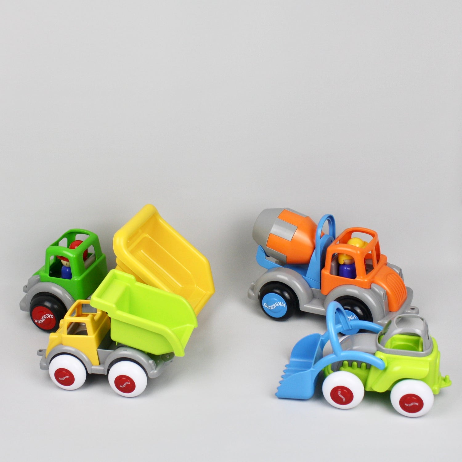 Swedish designed and made from toxic free plastic this construction site toy set is action packed and ready to get to work! The epic collection includes: 1 jumbo tipper truck, 1 midi tipper truck, 1 jumbo cement mixer and 1 midi tractor.