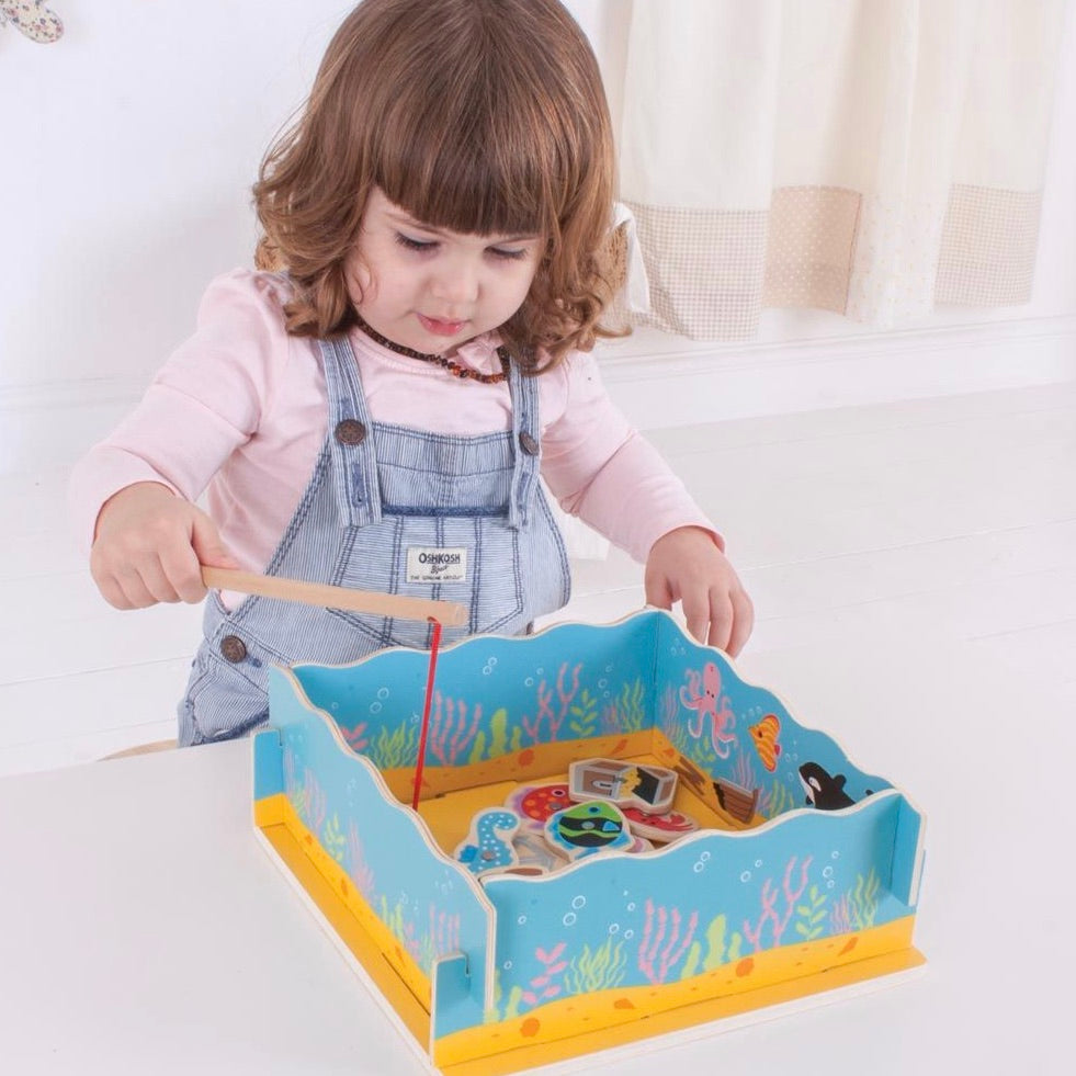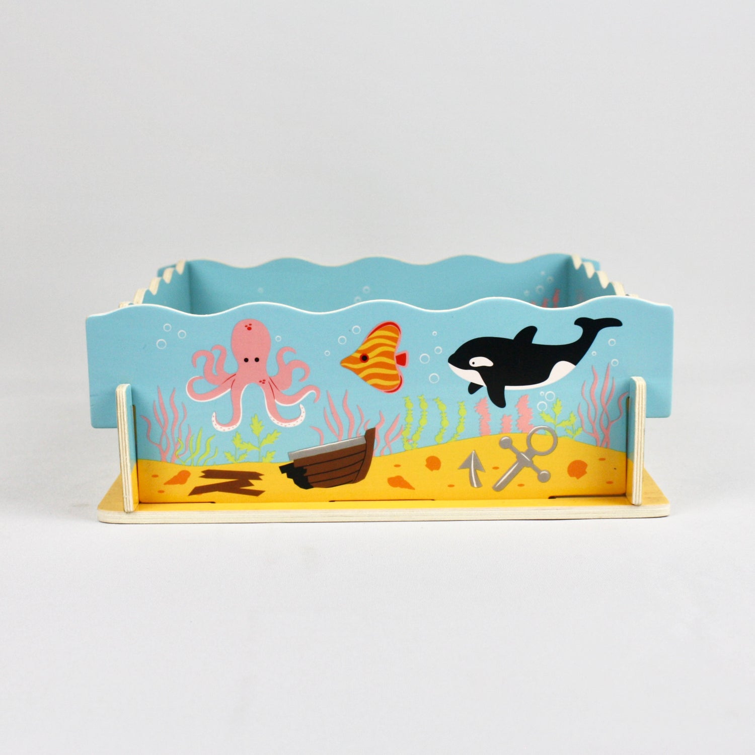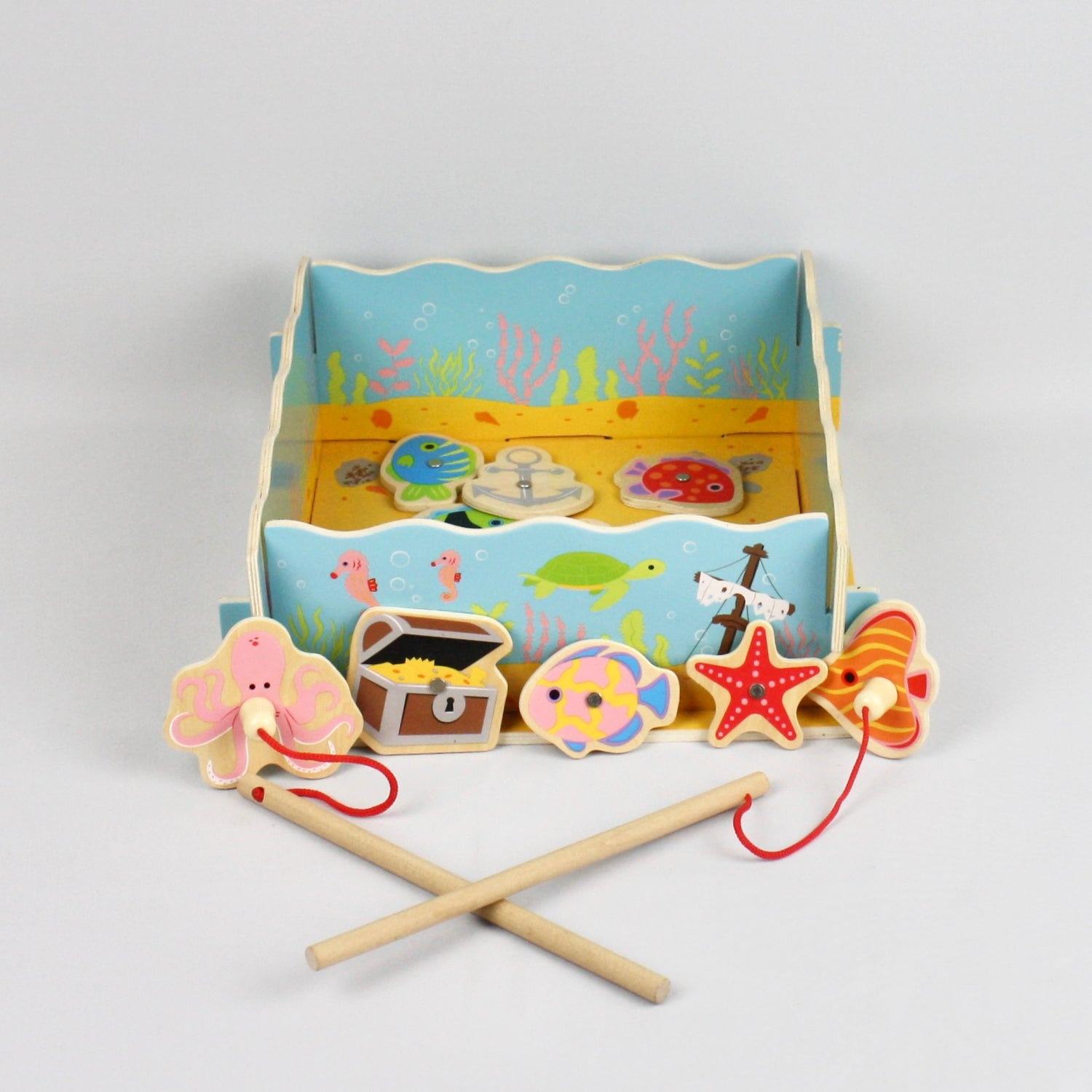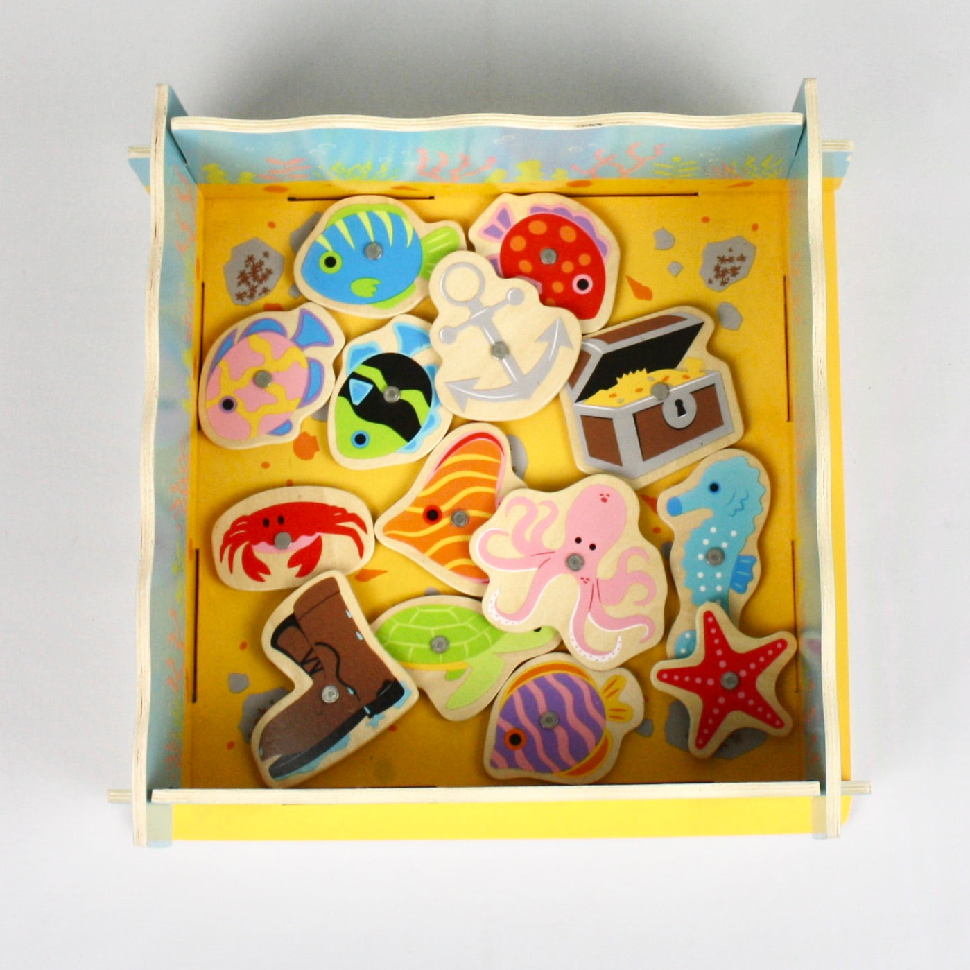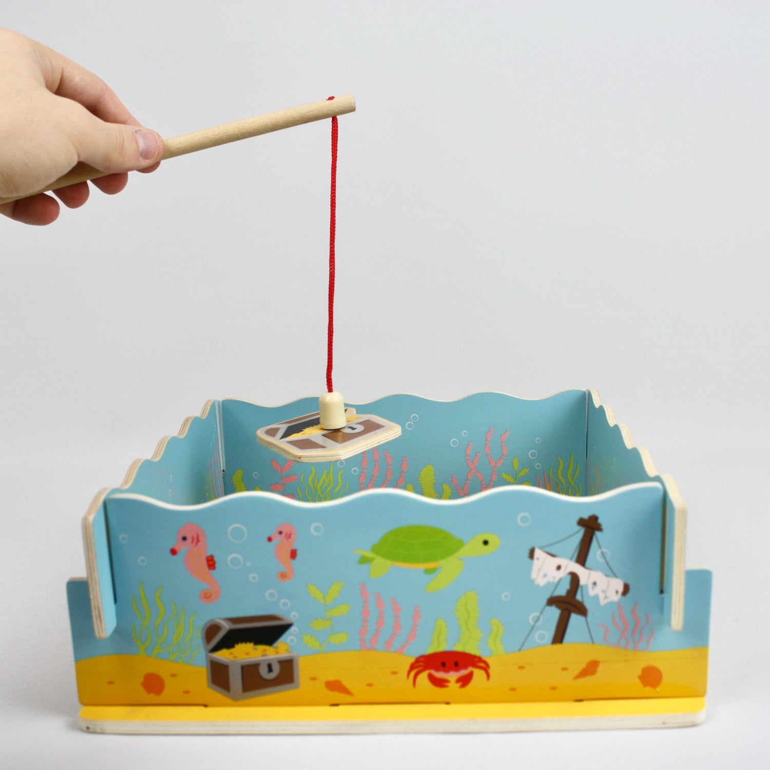 These colourful wooden fish can be hooked up by the magnetic rod and once safely attached, lowered back onto the wooden board, and if you're really lucky you may even find the treasure!